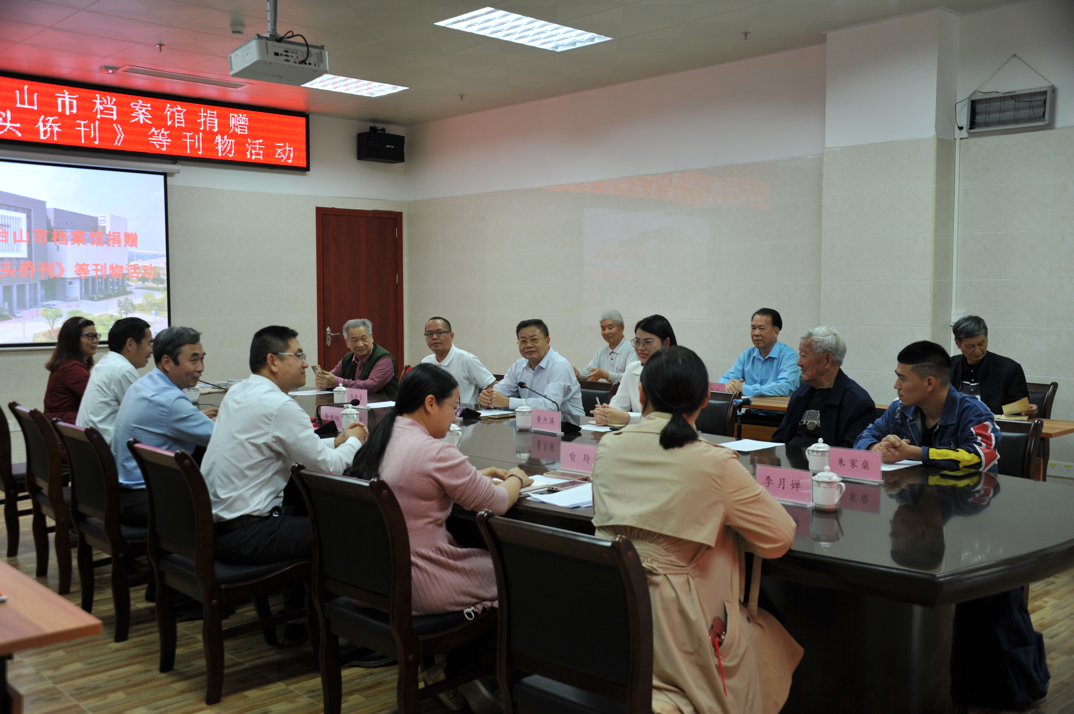 捐赠仪式结束后,与会人员举行了座谈会,大家围绕地方文化资源保护、文史资料征集、侨刊乡讯发展等多个方面畅所欲言,纷纷提出了各自的看法和建议。座谈会现场气氛热烈。