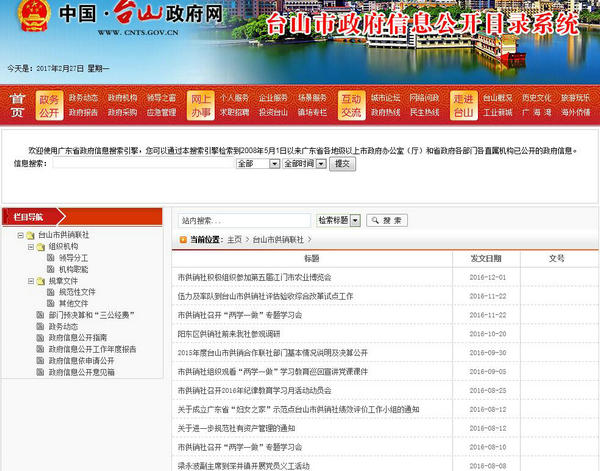 (一)不断完善机构建设。市供销社坚持“以人为本,服务群众”的工作思路,成立台山市供销社网站建设和管理工作领导小组,由分管办公室领导任组长,办公室负责组织、协调网站的统筹规划和建设管理工作,并专门安排了一名工作人员具体负责市供销社政府信息公开工作的集中推进和日常管理工作,实现了领导、机构、人员“三到位”。强化了组织领导,严格了责任追究,不断提高服务质量和服务水平,积极推进政务信息公开。