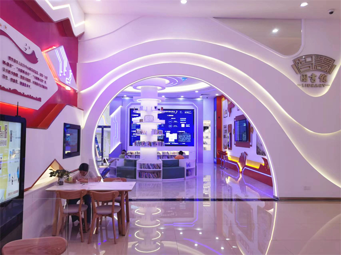 台山市智慧图书馆内设有党建有声互动空间、党建文化阅读区、数据展示墙以及地方文化区等多个区域,投放视频、图书、报刊等资源多达两万册(件),工作日和节假日均24小时免费对外开放,是为群众提供沉浸式学习、互动、体验的一站式平台。